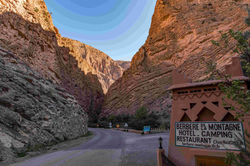 Zunächst durchfahren wir die Filmstadt Quarzazate. Die Stadt liegt auf etwa 1.120m zwischen den Gebirgsketten des Hohen Atlas und des Antiatlas. Als Drehort von Filmen spielt Ouarzazate eine große Rolle. Das Flusstal des Dades zwischen Ouarzazate und Errachidia, unser weiterer Reiseverlauf, ist unter dem Namen „Straße der 1.000 Kasbahs“ berühmt geworden. Die archaischen Formen der jahrhundertealten Lehmburgen, das üppige Grün der Oasengärten und die rötlich schimmernden Berge im Hintergrund verschmelzen zu Bildern einzigartiger Schönheit. Am Nachmittag wird uns die Fahrt durch das Dades-Tal mit der Gorges du Dadès (Dadesschlucht) als ein unvergessliches Erlebnis in den Gedanken bleiben. Nach etwa 30 Kilometern wird das Tal zur Schlucht. Immer enger rücken die Berge an den Fluss heran, bis die Felswände so eng stehen, dass sich die Straße über den Berg winden muss. Am Aussichtspunkt (toller Blick vom Terrassen-Cafe) gönnen wir uns eine Erfrischung und wer mag, kann von hier aus für das Fotoalbum noch einige Kilometer weiterfahren, dann endet die asphaltierte Strecke und wir kehren um...
