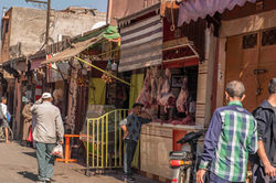 Essen: Die marokkanische Küche verbindet die arabische Küche mit kolonialen Einflüssen und verfügt über unzählige Gerichte. Der Islam, der den Genuss von Schweinefleisch und Alkohol untersagt, beeinflusst auch die Rezepte. Das marokkanische Nationalgericht Tajine ist wohl das bekannteste Gericht Marokkos. Dabei handelt es sich um einen (scharfen) Eintopf. Dieser wird traditionell über Stunden in einem speziellen zylindrischen Tontopf auf kleiner Flamme gegart. Es gibt verschiedene Varianten, beispielsweise mit Huhn, Hammel, Fisch oder Garnelen die immer mit Gemüse oder Kartoffeln kombiniert werden. In gut besuchten Garküchen am Wegesrand kann man meist bedenkenlos eine Tjine bestellen.